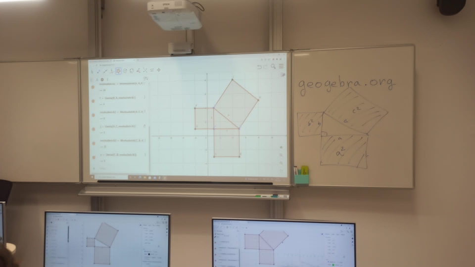 V pátek 28.1.2022 nás podruhé navštívili lektoři z VŠB-TU, aby seznámili tentokrát žáky VIII. ročníku a paní učitelku Čechovou s volně dostupnou, matematickou aplikací od googlu, GEOGEBROU. Během lekce se žáci s výukovým softwarem seznámili, vyzkoušeli si práci se základními prvky jako bod, úsečka, přímka, mnohoúhelník ... pracovali s rámováním, výplní atd.. Lekce se všem líbila, budeme se těšit na další vzájemnou spolupráci s lektory z VŠB.