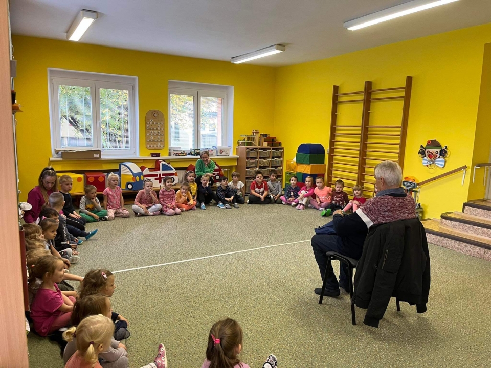 V měsíci říjnu byl u nás číst pohádku dětem dědeček od Zoinky, který si přinesl pohádku z Alenčiny čítanky " O medvědovi a jahodách". Po přečtení pohádky si děti povídaly s dědečkem, o čem pohádka byla, které zvířátka tam vystupovala a nakonec si nakreslily obrázek k pohádce. Děkujeme dědečkovi za ochotu.